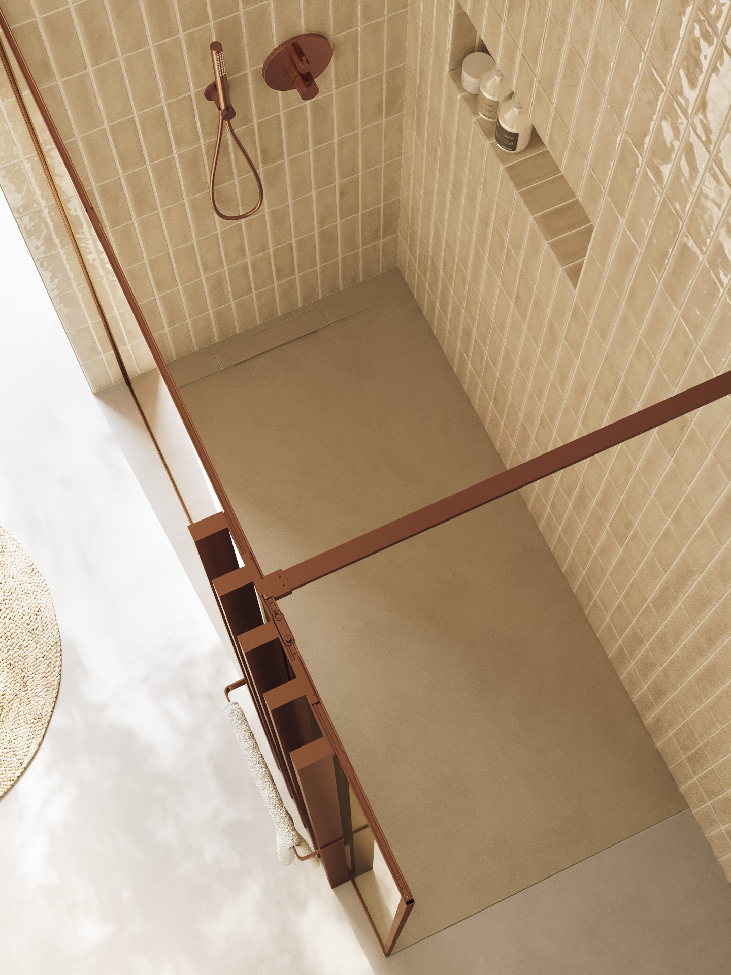 - The Isola shower tray in the same colour: sleek and flat design for a contemporary look.