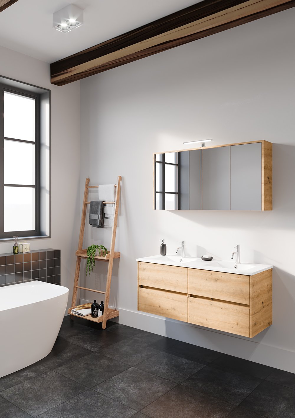 Chcete jednoduchou, pevnou a snadno udržovatelnou koupelnu? Pak je Porto dobrá volba. Vaše nadčasová koupelna Porto má jednoduché nebo dvojité umyvadlo se zásuvkami s měkkým zavíráním. K dispozici jsou šířky od 60 do 120 cm.