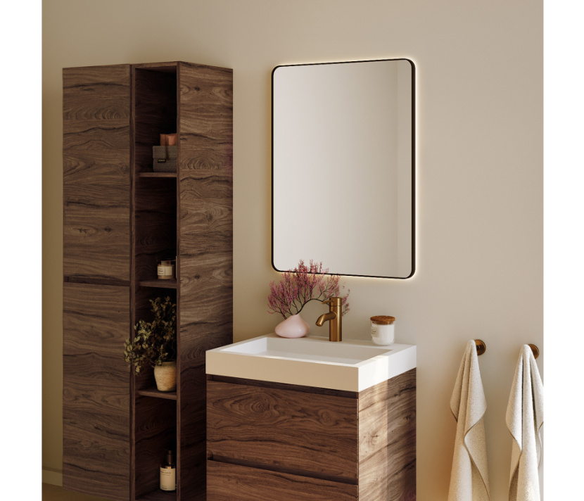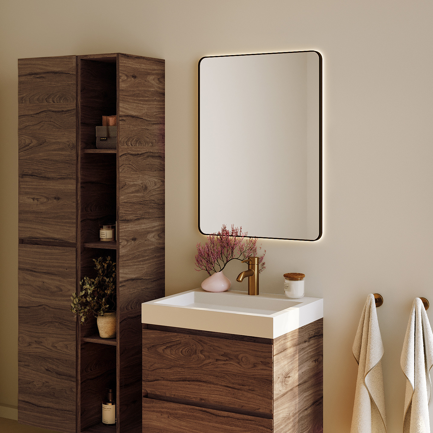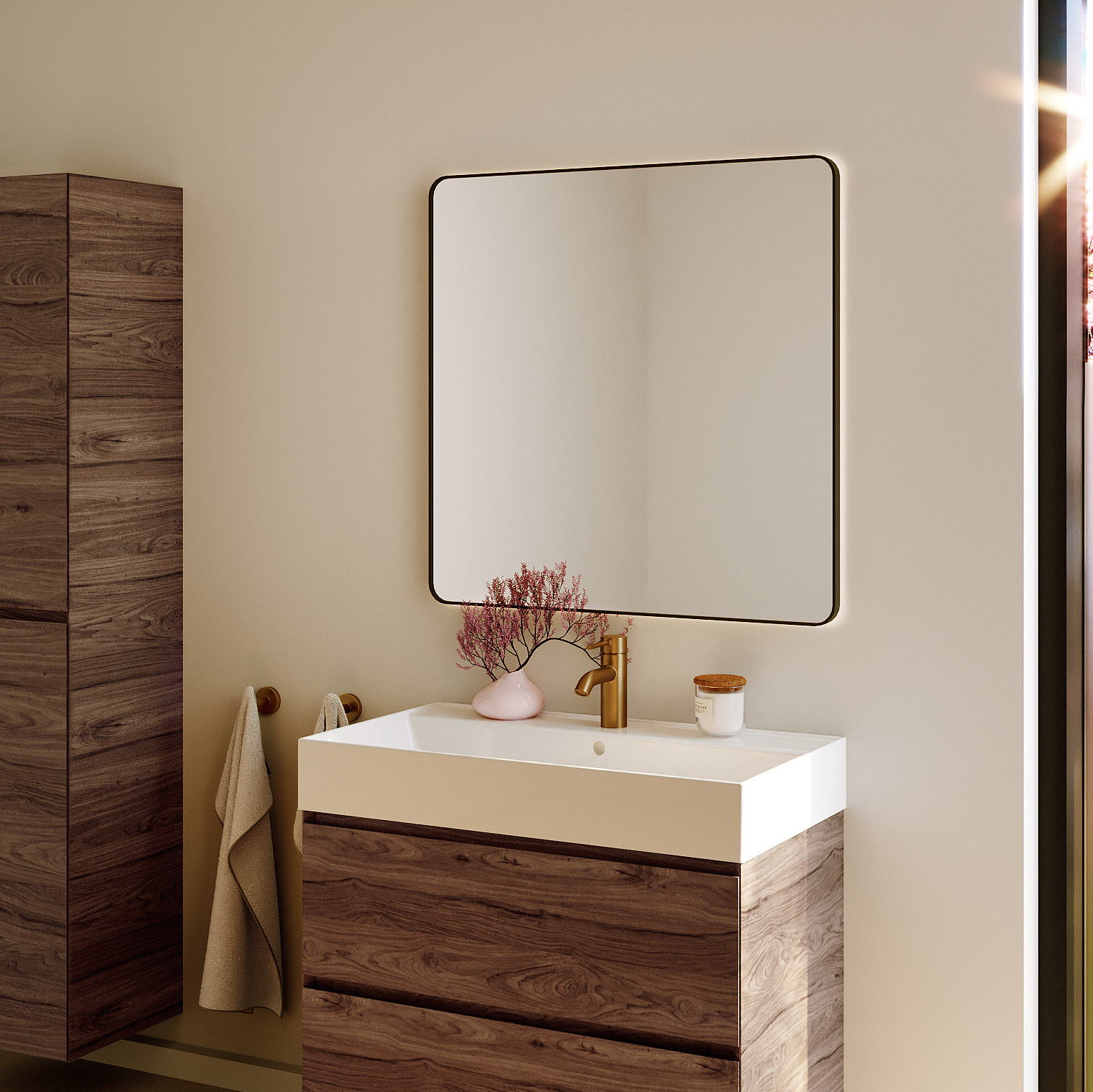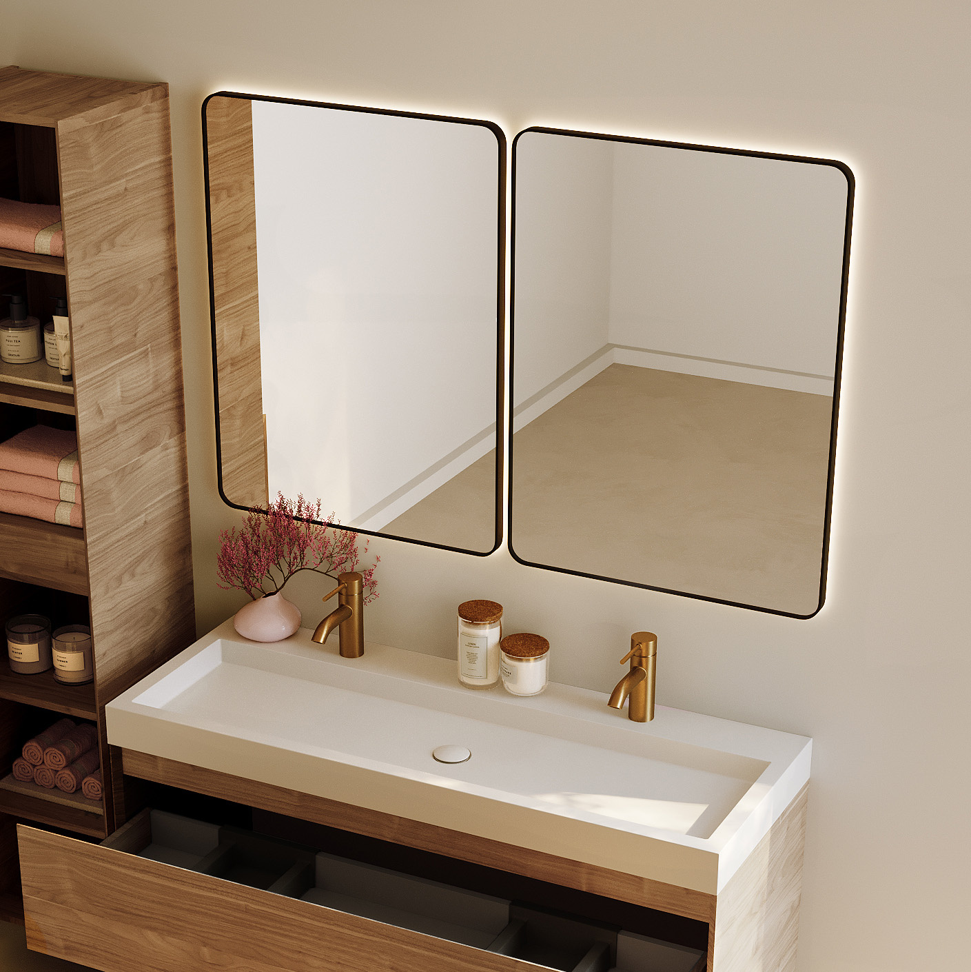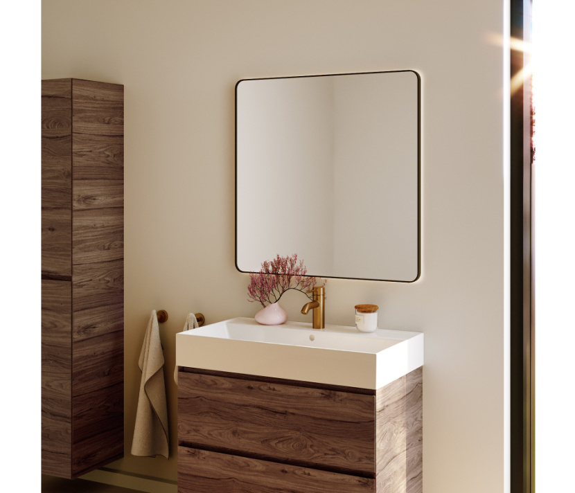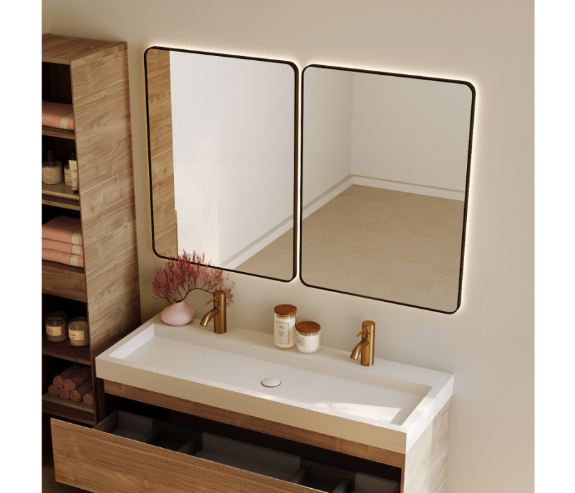 Zrcadla SHIELD obdélníková mají zaoblené rohy s nepřímým osvětlením po celém svém obvodu.