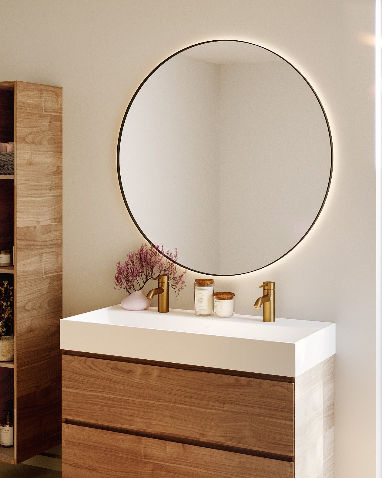 Ovale Spiegel sind eine elegante Wahl, die Ihrem Badezimmer eine sanfte und luxuriöse Note verleihen. Der Oval Mirror von RIHO besticht durch eine subtile Form, die sowohl zu modernen als auch klassischen Bädern passt. Sein fließendes Design macht diesen Spiegel zur perfekten Wahl für alle, die etwas Abwechslung von den traditionellen rechteckigen Formen suchen. Der Spiegel verfügt zudem über eine indirekte Beleuchtung rund um den Rahmen und eine Spiegelheizung, die über einen Bewegungssensor aktiviert wird. Immer ein perfektes Spiegelbild!