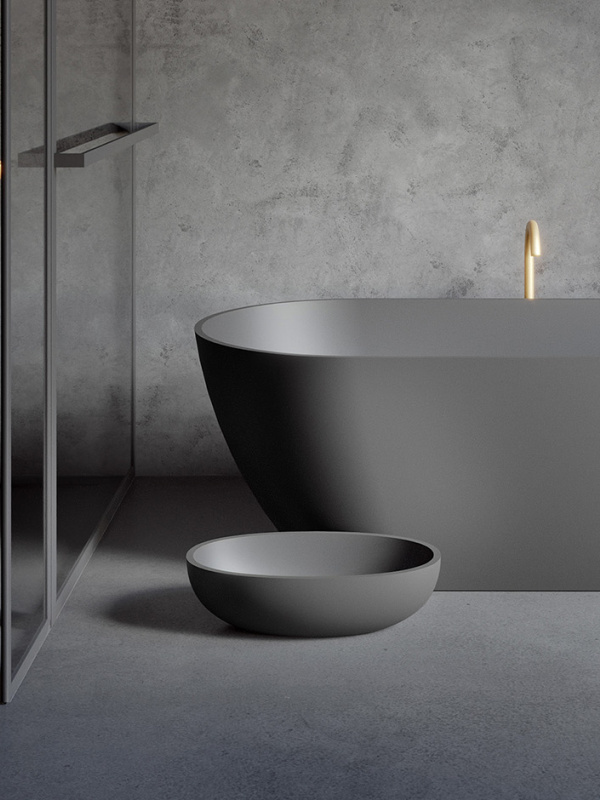 Wie die Badewanne Bilbao ist auch das passende Aufsatzwaschtisch Escala mit Solid Surface in den drei Farbtönen erhältlich. Entscheiden Sie sich für eine harmonische Kombination in Betonoptik, indem Sie Badewanne und Aufsatzwaschbecken in derselben Farbe wählen.
