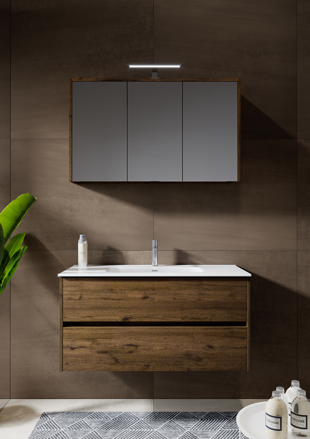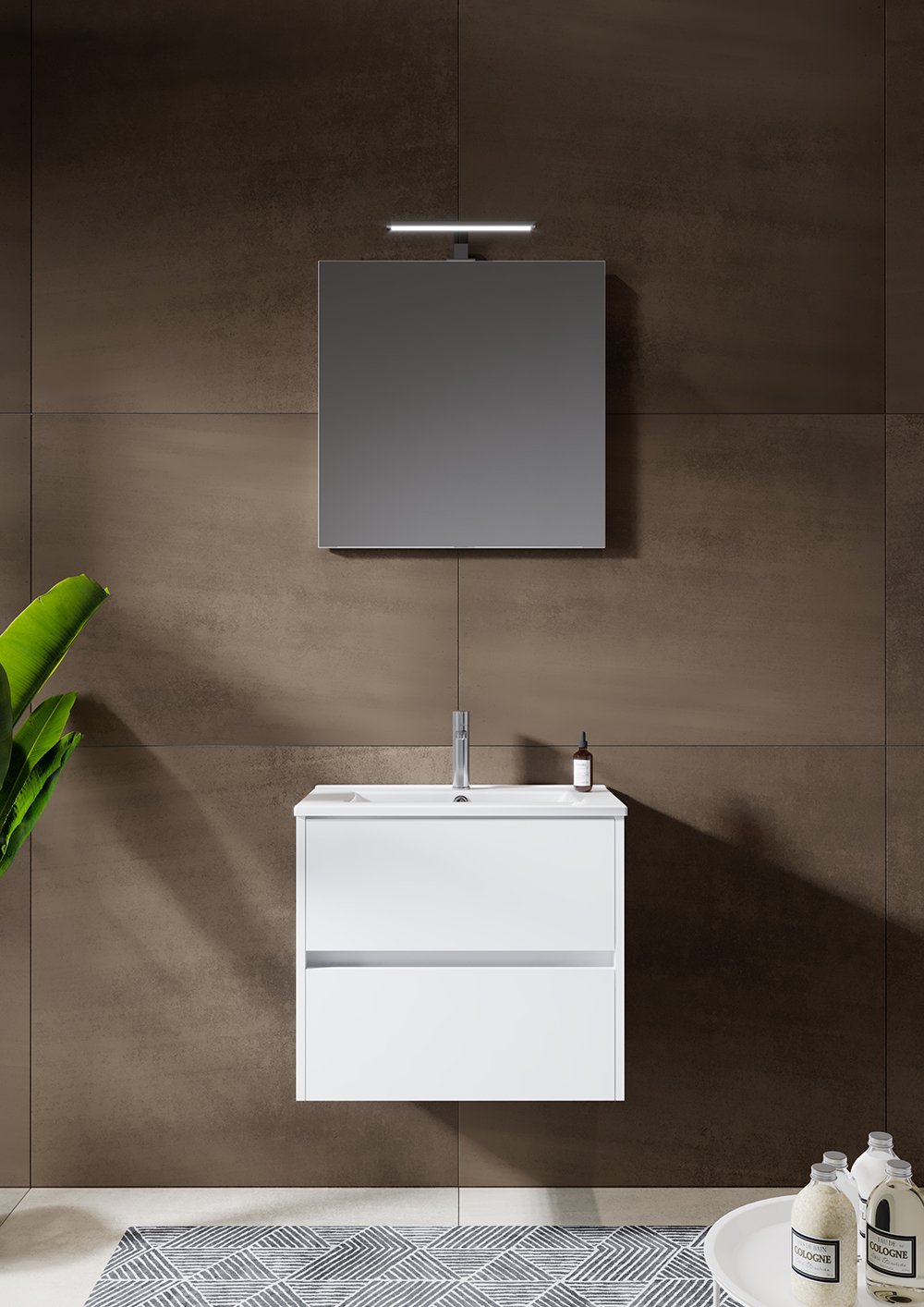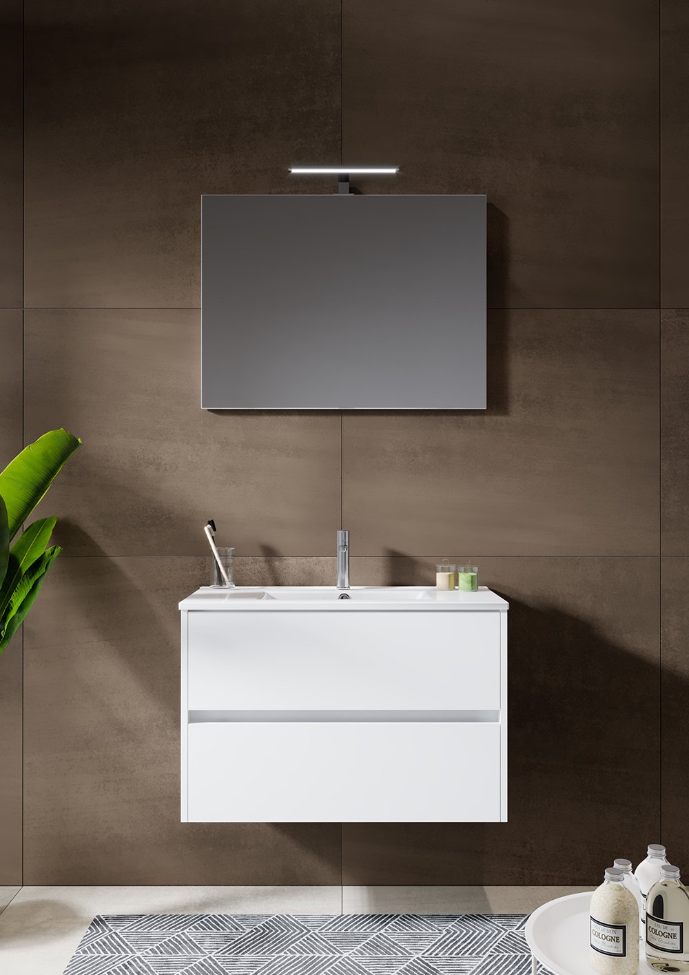 Richten Sie Ihr Gästebad praktisch ein mit der Porto Fountain. Moderne Beleuchtung, schlichter Spiegel, pflegeleichtes Waschtische und ein praktischer Schrank. Mit diesem Set geben Sie Ihrem Gästebad den letzten Schliff.