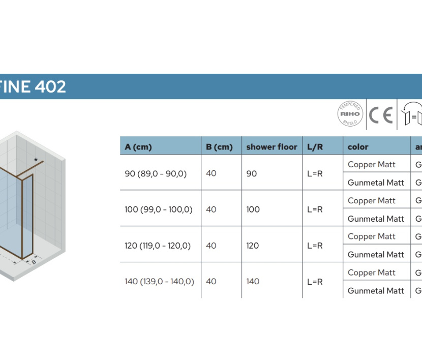 | Define 402 | 100 x 200 cm | G010010302 | Copper Matt |