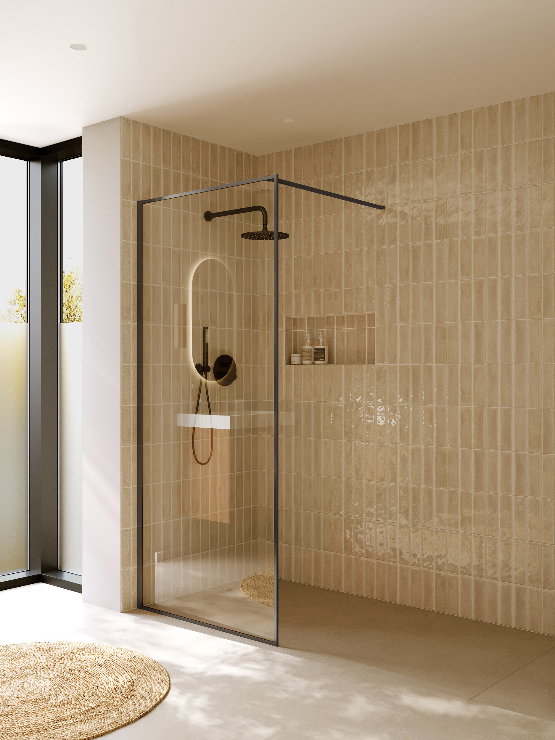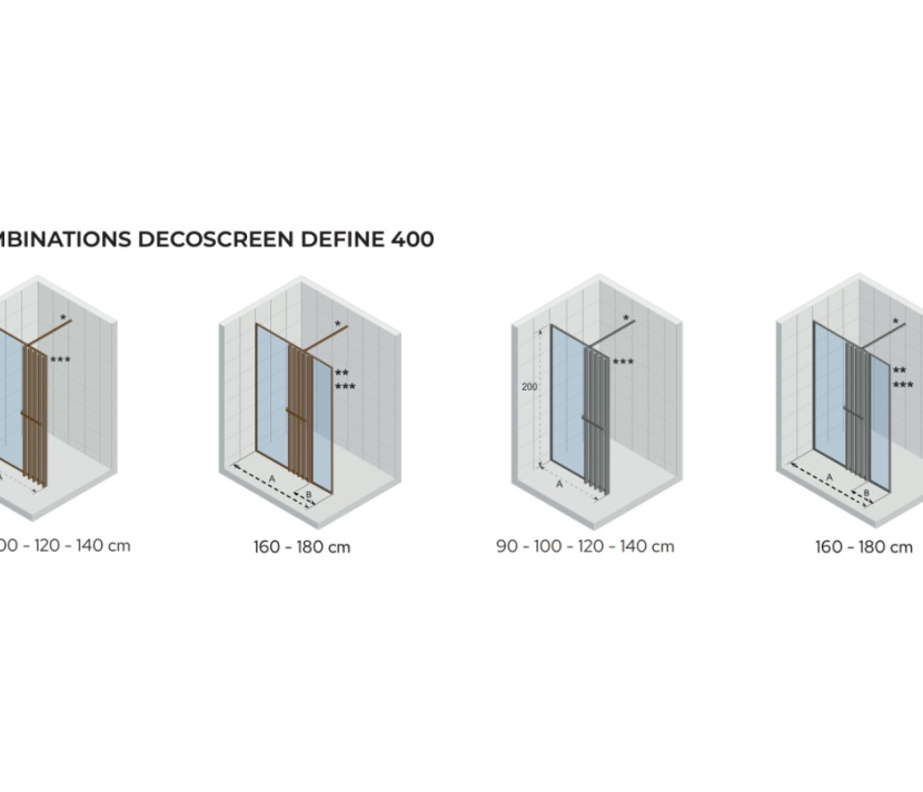 Das vielseitige Design der Define ermöglicht eine flexible Anpassung an unterschiedliche Raumgrößen. Die Standardgrößen reichen von 90 cm bis 140 cm, und für größere Duschen kann die Kabine mithilfe einer zusätzlichen 40 cm Platte auf beeindruckende 160 oder 180 cm erweitert werden. So schaffen Sie einen großzügigen Duschbereich, der sowohl funktional als auch stilvoll ist.