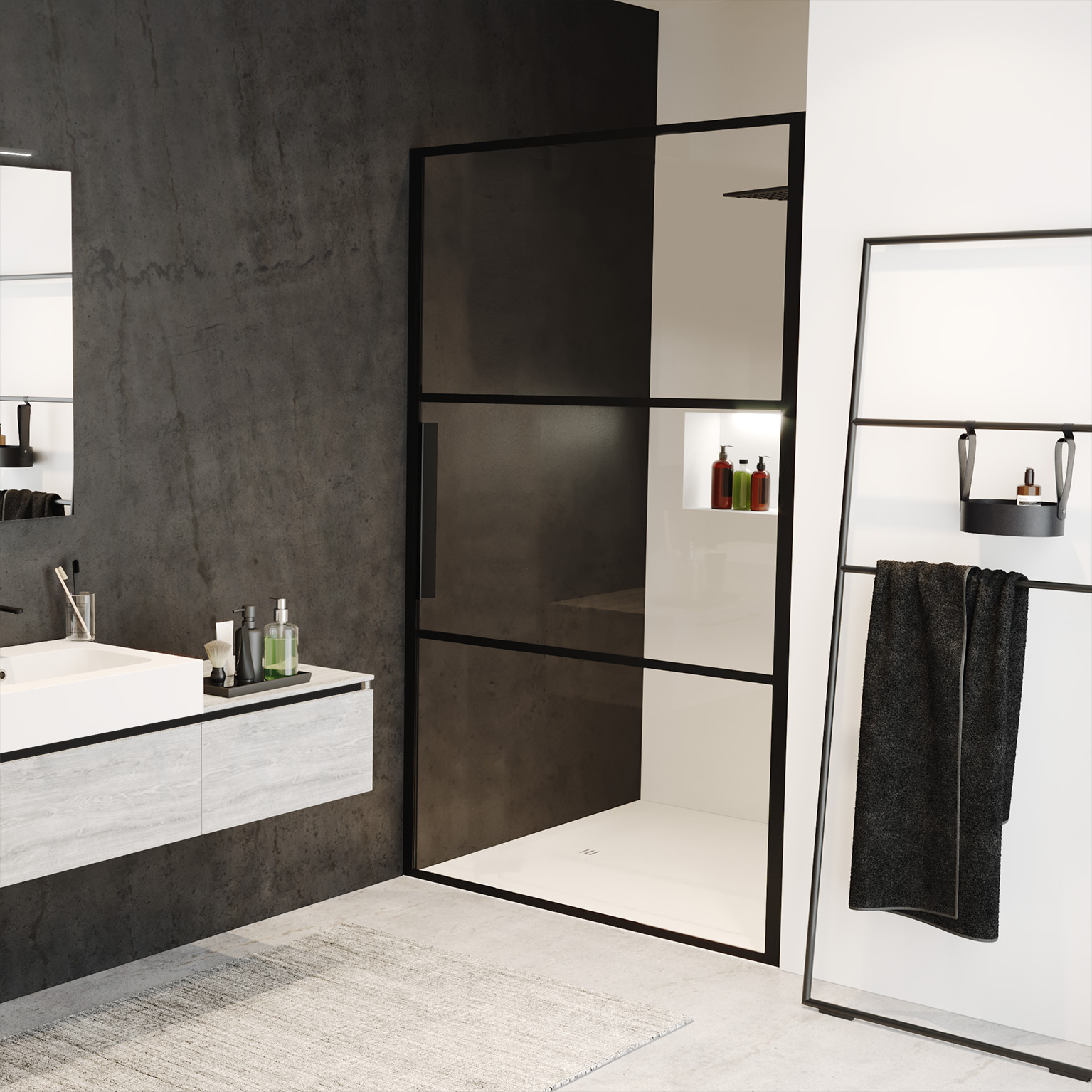 Mit einer Duschtür aus Glas machen Sie Ihre Dusche komplett. Unsere Grid 101 ist eine stilvolle, pflegeleichte Drehtür mit mattschwarzen Profilen aus pulverbeschichtetem Aluminium. Eine erfrischende Dusche am Morgen oder eine entspannende Auszeit am Abend? Diese Tür ist einfach zu installieren und schließt Ihre Dusche vollständig ab.