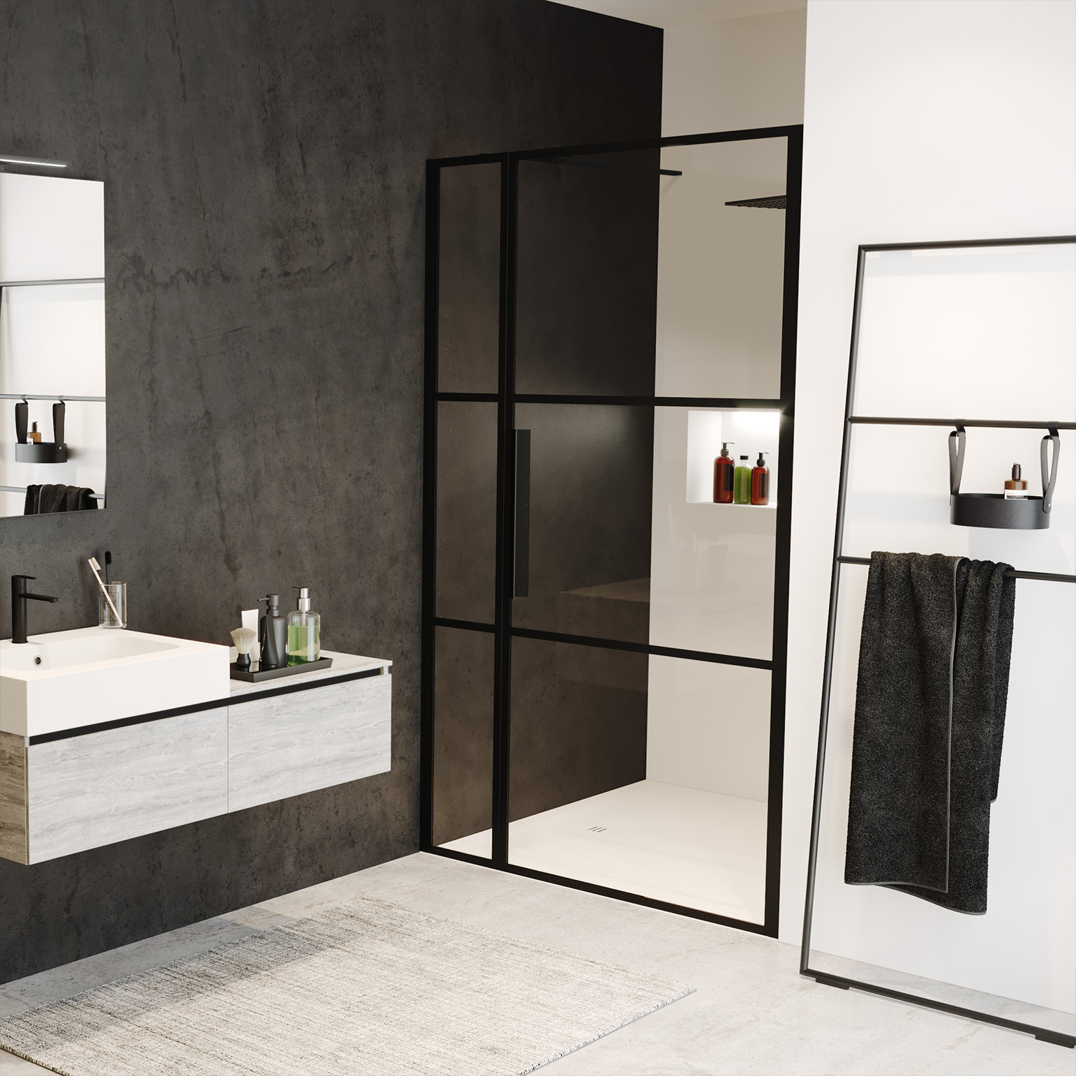 Eine herrlich belebende Dusche am Morgen oder eine entspannende am Abend... Mit dieser einfach zu installierenden Duschtür bleibt Ihr Badezimmer immer trocken. Darüber hinaus erzeugt unsere Grid 104 Tür mit fester Wand ein Gefühl von Raum und Luxus in jedem großen oder kleinen Badezimmer.