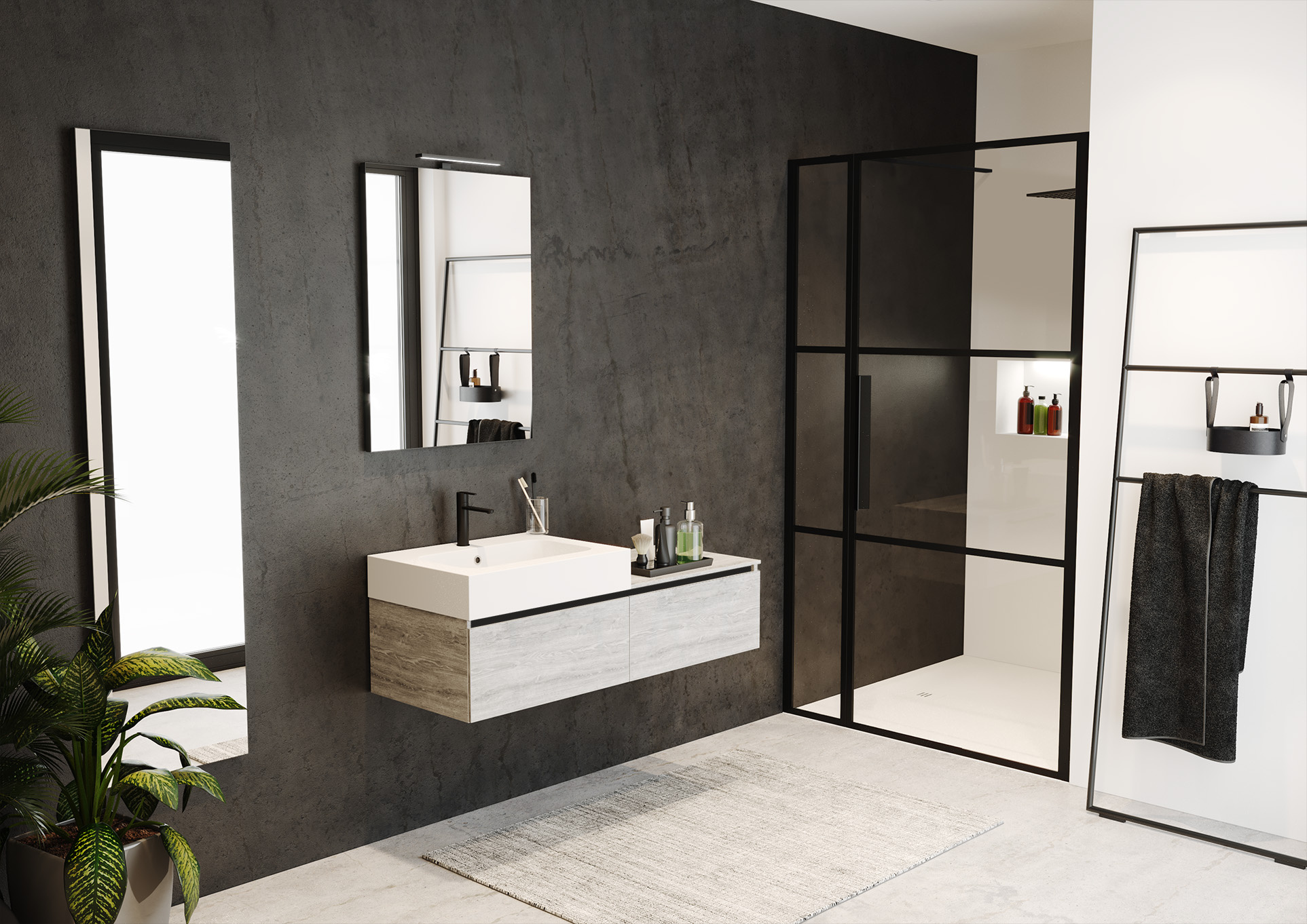 Sind Sie auch begeistert von dieser modernen Lösung aus mattschwarz pulverbeschichtetem Aluminium? Oder bevorzugen Sie einen anderen Stil? Entdecken Sie unser komplettes Sortiment an Duschtüren. Sie entscheiden! Und wählen Sie dazu auch gleich eine schöne Duschwanne.