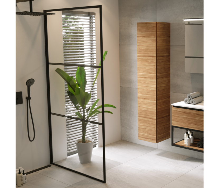 Mit einer Walk-In-Dusche mit Glaswand erzeugen Sie ein Gefühl von Raum in Ihrem Badezimmer. Unsere Grid 400 ist eine trendige Duschwand aus Glas mit geradlinigen Profilen aus pulverbeschichtetem, mattschwarzem Aluminium. Damit kreieren Sie in der Ecke Ihres Badezimmers eine wunderschöne Walk-In-Dusche. Die Wand ist einfach zu installieren und besteht aus soliden, robusten Materialien.