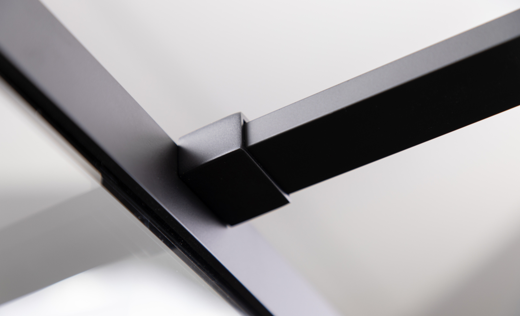 Die Grid 402-Duschwand aus Glas ist einfach und schnell zu installieren. Die mattschwarze Stange, die die Stabilität der Konstruktion gewährleistet, bildet mit der Wand ein schönes Ganzes. Die markanten Aluminiumprofile umschließen 6 mm starkes Klarglas, das mit einer RIHO Shield-Beschichtung versehen ist. Da Wassertropfen daran schnell abperlen und sich die Profile nur auf der Außenseite der Abtrennung befinden, ist das Glas sehr pflegeleicht. So haben Sie noch mehr Zeit zum Genießen!