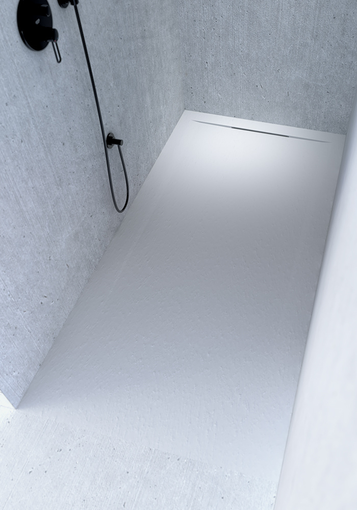 Der Duschboden hat eine matte Schieferstruktur. Die Slate-Verarbeitung bietet dank der Antirutschstruktur sofortige Sicherheit. Der Duschboden ist zeitlos und hat eine geradlinige Optik. Hierdurch passt er perfekt zu Badezimmern in unterschiedlichen Stilen. In unseren Augen ist die Kombination mit einem industriellen oder modernen Badezimmer besonders gelungen. Und was denken Sie?