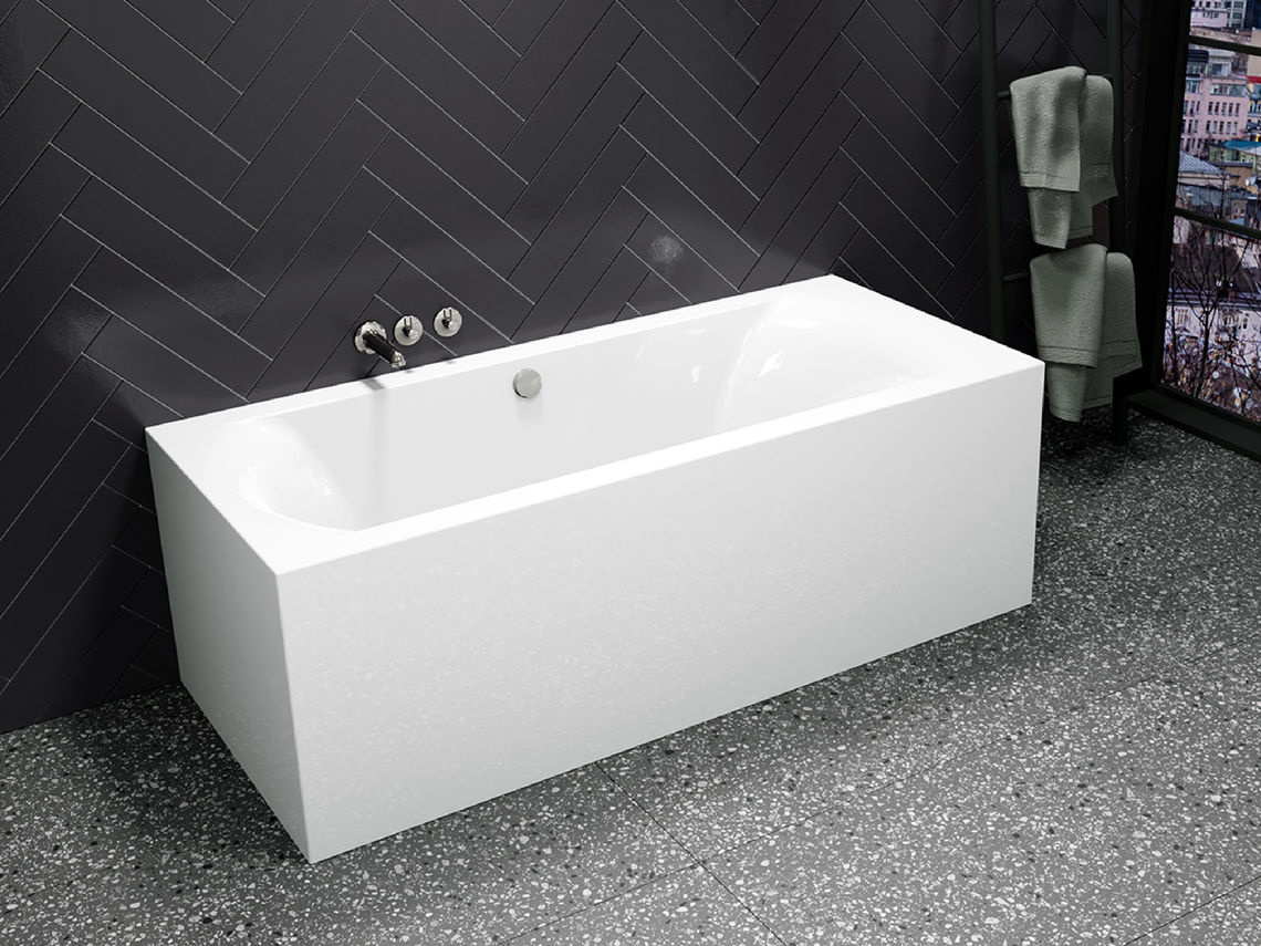 Die im RIHO-Sortiment bisher als Eckversion (kurzes Paneel und Frontpaneel) erhältliche Wanne gibt es nun in der Back2Wall-Wandversion mit drei Paneelen: zwei kurze Paneele und ein langes Frontpaneel.