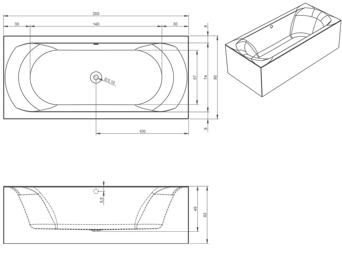 Plug & Play Back2Wall links = rechts 200 x 90 x 62 cm B144014005