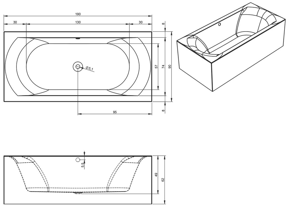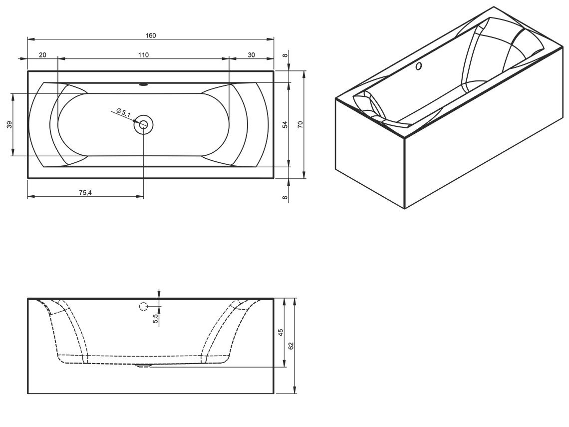 Plug&Play-Wannen sind mit nahtlosen verleimten Seitenpaneelen aus dem gleichen Acrylmaterial wie die Wanne selbst versehen. Dadurch erhält Ihre Einbauwanne den Look einer halb freistehenden Badewanne. Im Vergleich zur Fliesenverkleidung ermöglicht diese intelligente Lösung eine schnellere Montage. Gleichzeitig sorgt sie für eine nahtlose und ästhetische Optik. Mit diesem Produkt erhalten Sie eine vollständig montierte und gebrauchsfertige Badewanne mit Paneelen und Füßen. So müssen Sie nur noch den Siphon anschließen und die Ränder der Wanne verkleben. Die Höhe der Plug&Play-Wanne beträgt 62 cm.