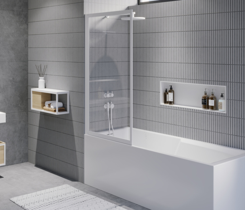 Badewannenaufsatz 1-teilig schwenkbar, Reversibel, Hebe und Senkmechanismus. Alu-Profile seidenmattweiß oder mattschwarz.