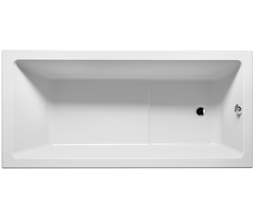 Einbau Badewanne, hochglänzendes weißes Acryl, rechteckig mit Duschbereich, Ablauf am Fußende. Auch mit dem Whirlpool System erhältlich: Air.
