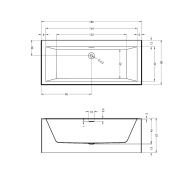 Wandbadewanne mit 12 cm breitem Wannenrand an der Wandseite!