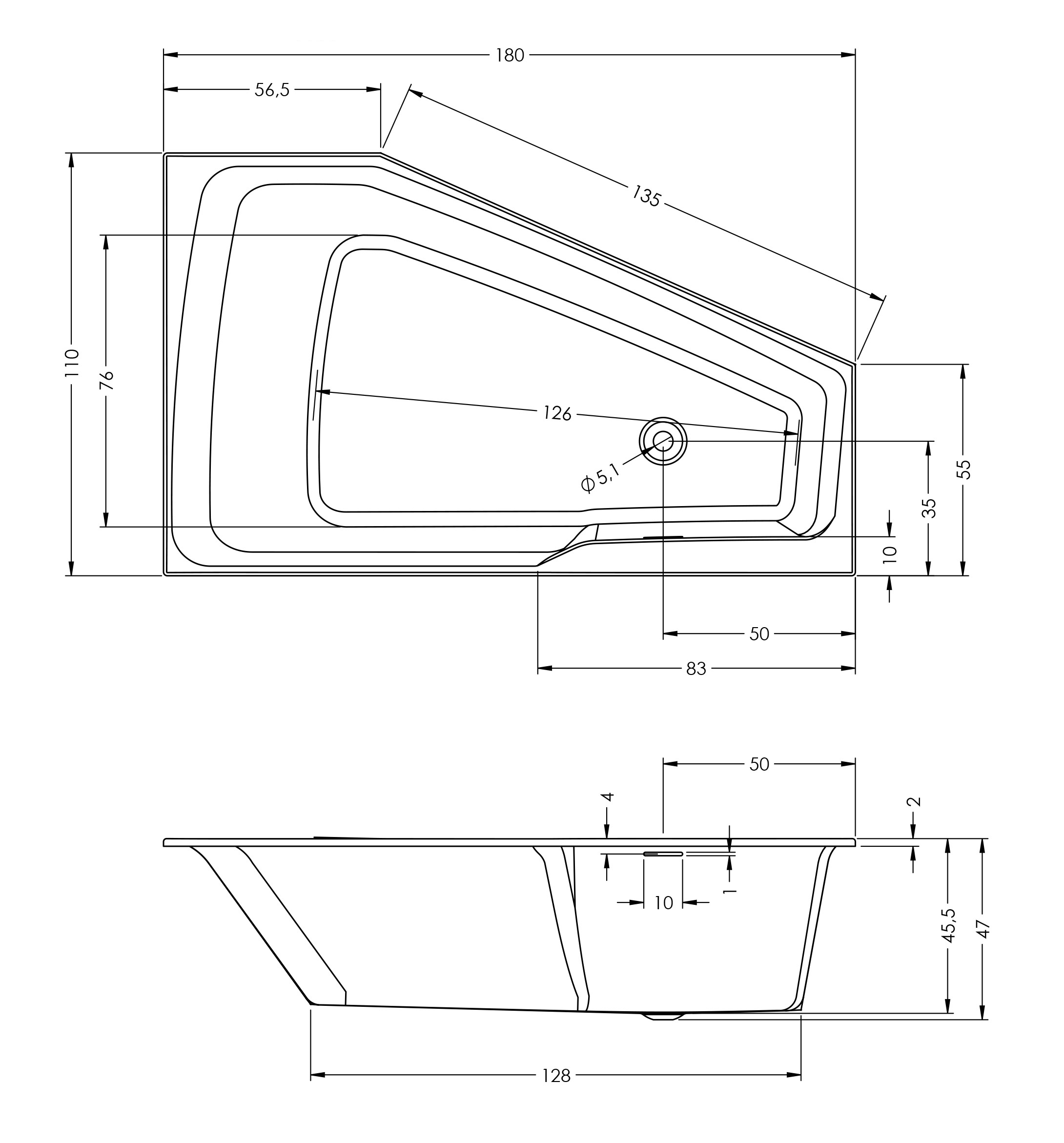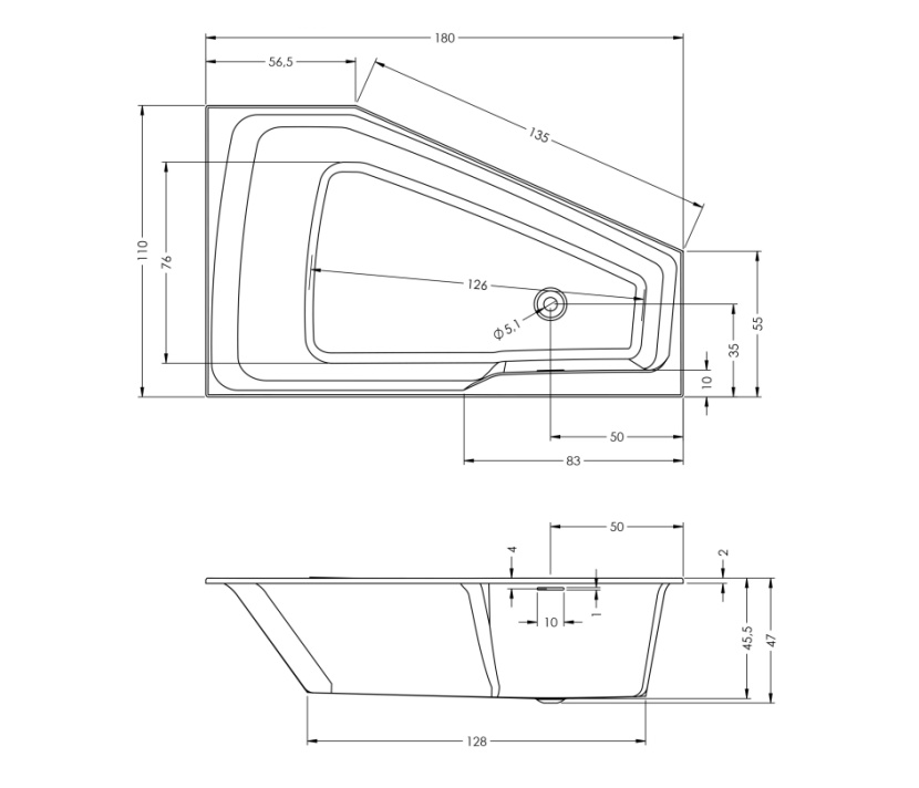 Die Badewanne kann mit RIHO Fall ausgestattet werden; dieser integrierte Wannenfüller macht eine separate Armatur überflüssig.