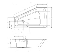 Platzsparende Einbaubadewanne aus der Rethink-Serie. Hochglänzend weiß, mit einem schönen, schlanken Wannenrand von 20 mm, einem schön gearbeiteten, geschlitzten Überlauf und einem Ablaufgarnitur, beide in der Farbe der Wanne. Erhältlich in einer Plug & Play-Version und mit den Whirlpoolsystemen: Air und Flow.