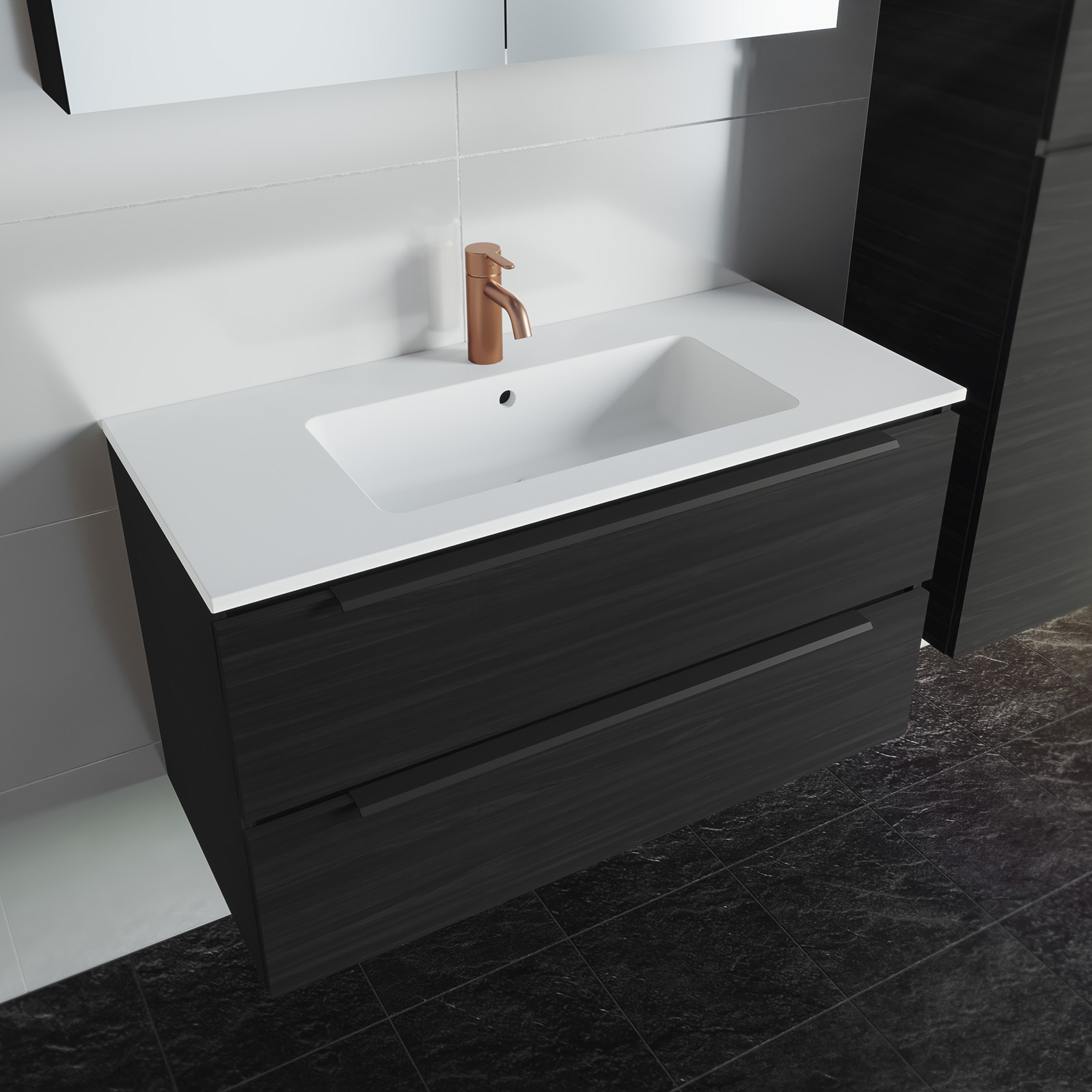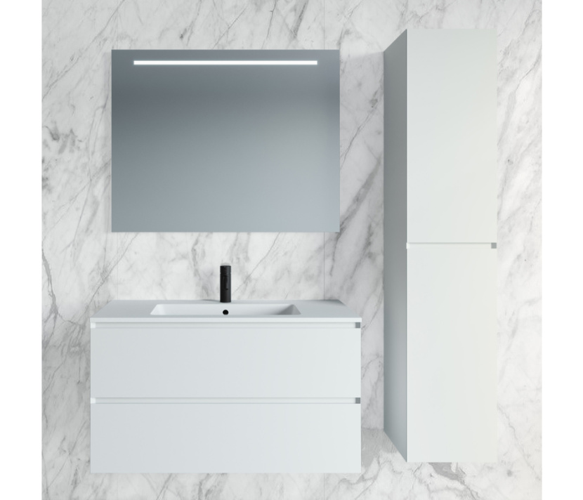 Dieser formschöne Waschtisch ist nur 1,5 cm hoch und 46 cm tief. Ein schönes Design, schlank mit festen Kanten. Spring-UP Dew ist mit einem Überlauf versehen. Sie können zwischen den Breiten 60, 80 oder 100 mit einer Spüle und 120 cm mit zwei Spülen wählen. Spring-UP Dew ist aus mattweißem Kunstmarmor gefertigt. Dieses Material ist porengeschlossen und daher leicht zu pflegen.