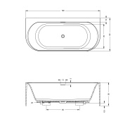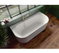 Halb freistehende, ovale Back-2-Wall Badewanne aus Solid Surface, mit internem Ablauf, Überlauf und Click/Clack.