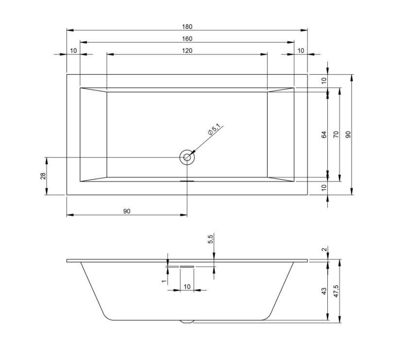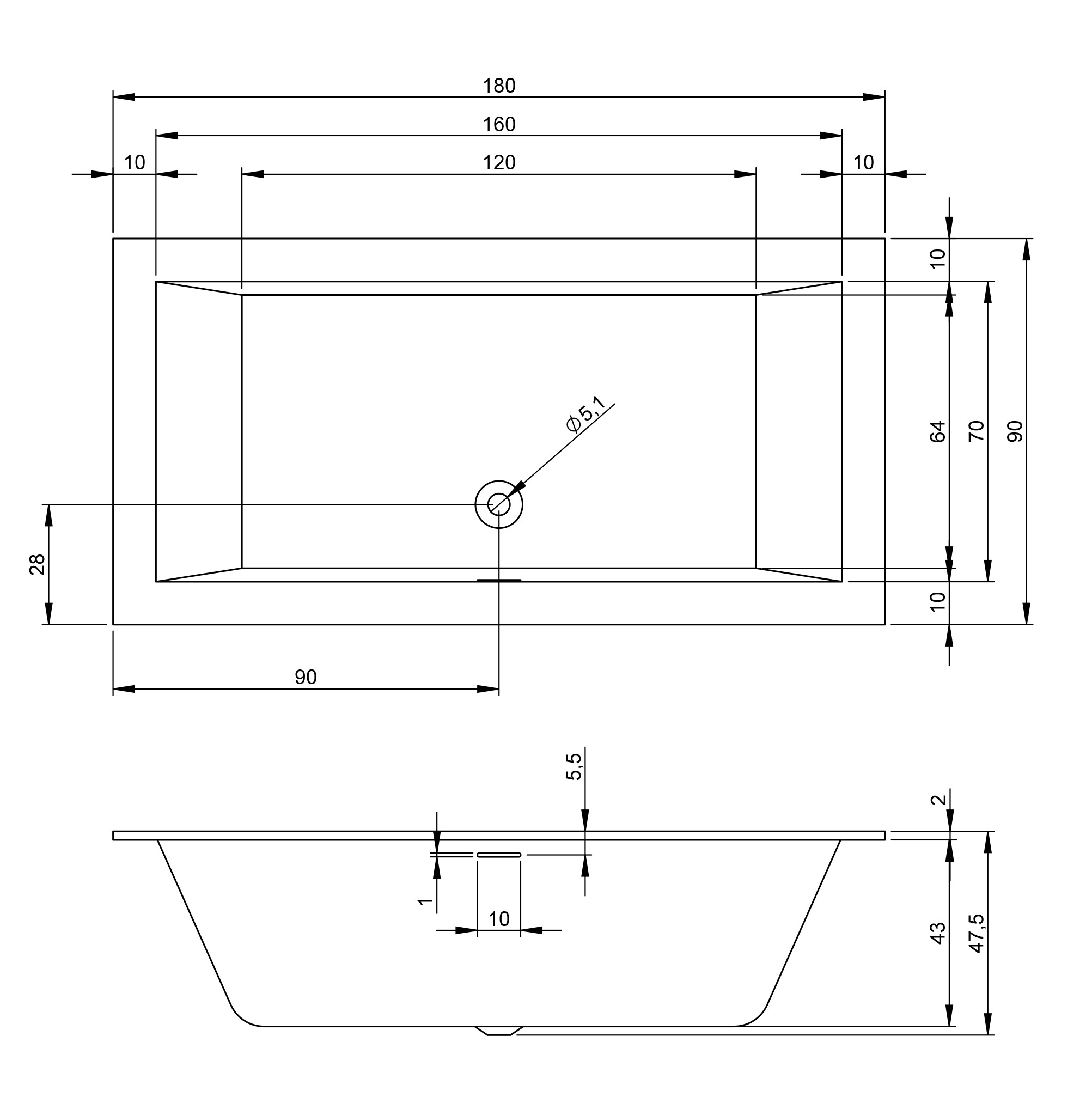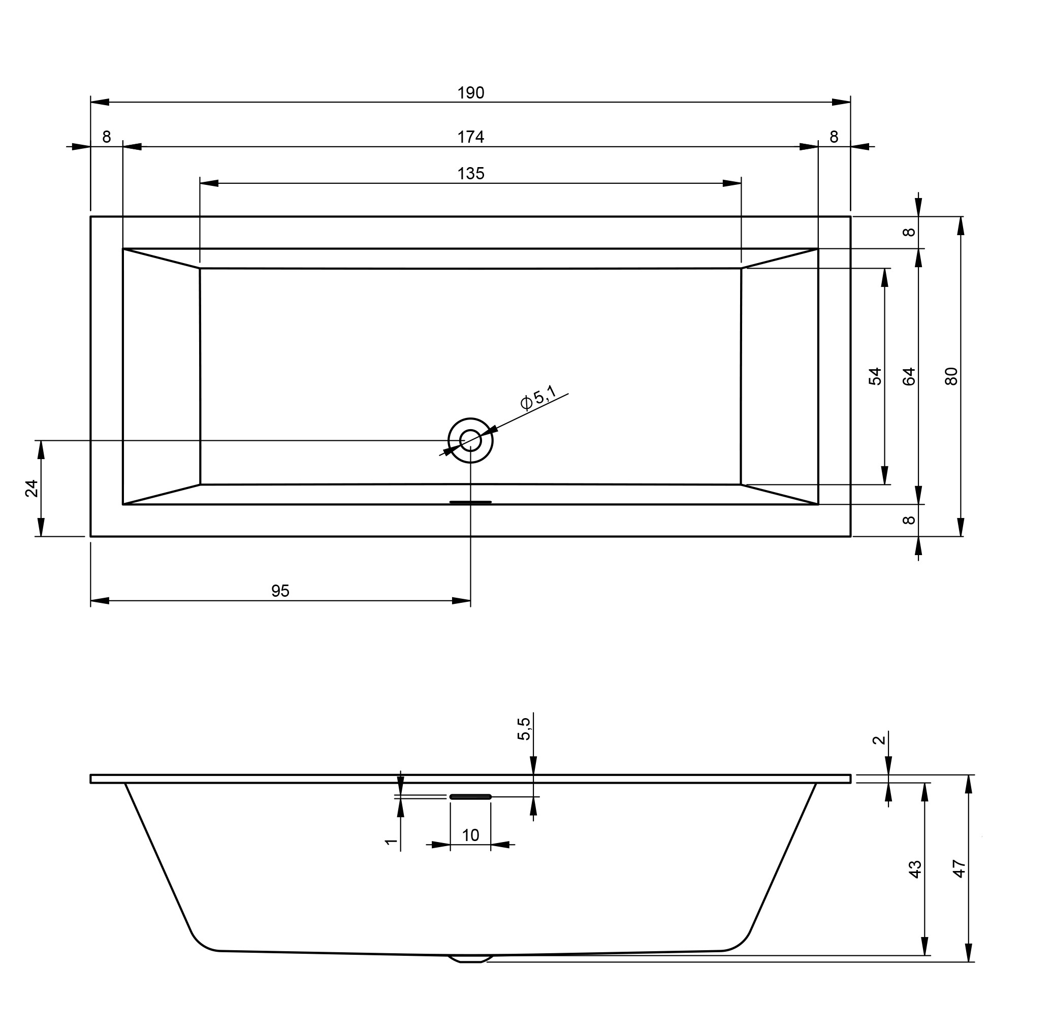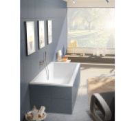 Built-in bath from the Rethink series. High gloss white, with a beautiful slender bath rim of 20 mm, a nicely finished slotted overflow and a pop-up drain, both in the colour of the bath. Available in a Plug & Play version and with the whirlpool systems: Air, Flow, Joy orr Bliss.