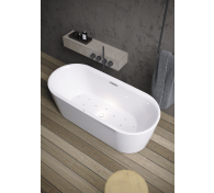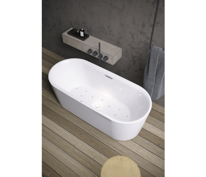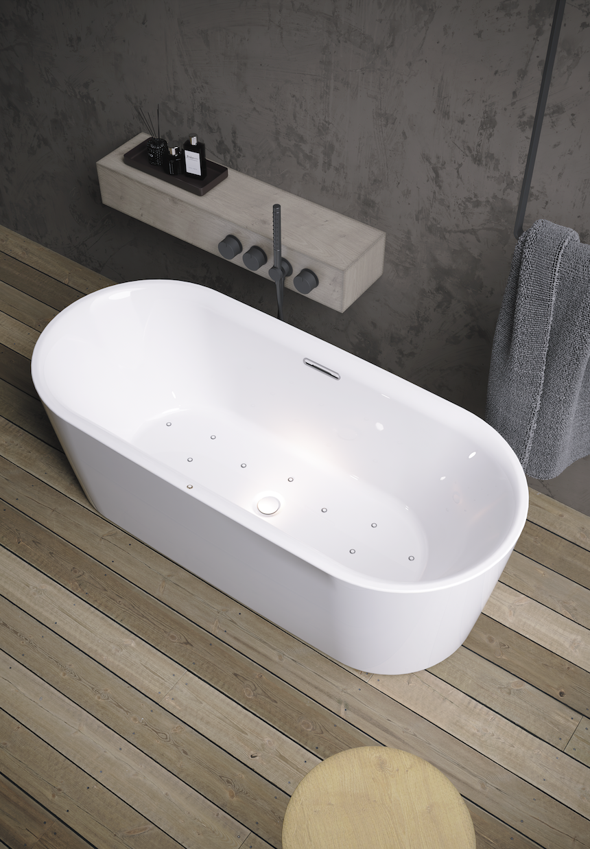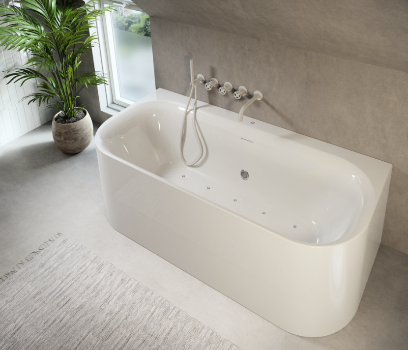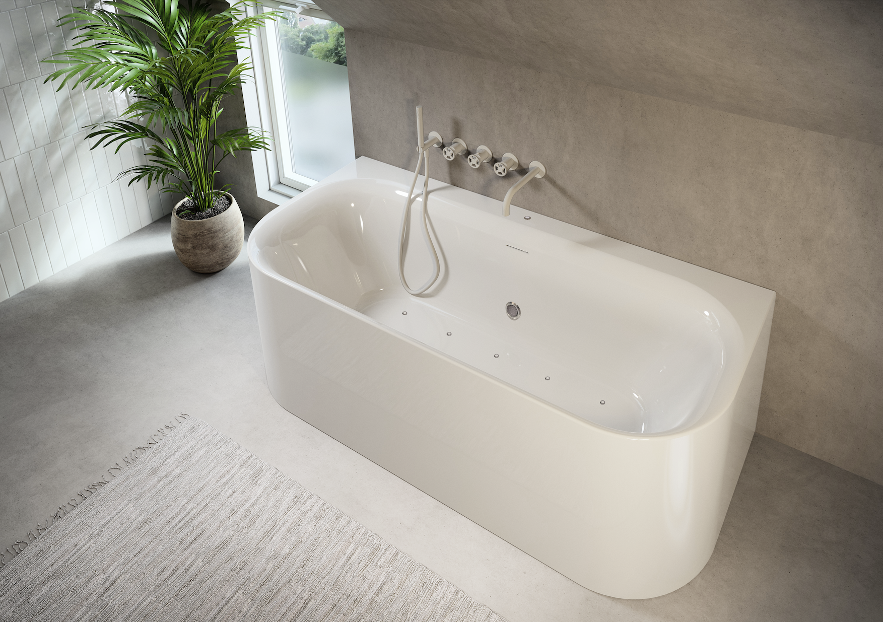 This whirlpool system is available on request (standard) on the semi-detached bathsDesire, Modesty and Devotion and on the built-in baths Rethink Cubic, Colorado, Castello, and Linares. Other baths are also available with this whirlpool solution on request, depending on the wishes and requirements.