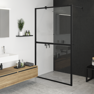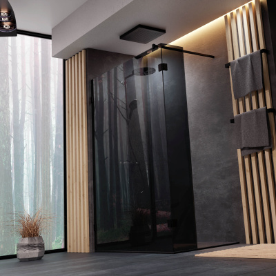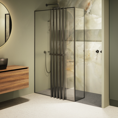 Ces parois de douche en aluminium sont très tendance. Disponibles en cuivre mat et en noir de bronze.