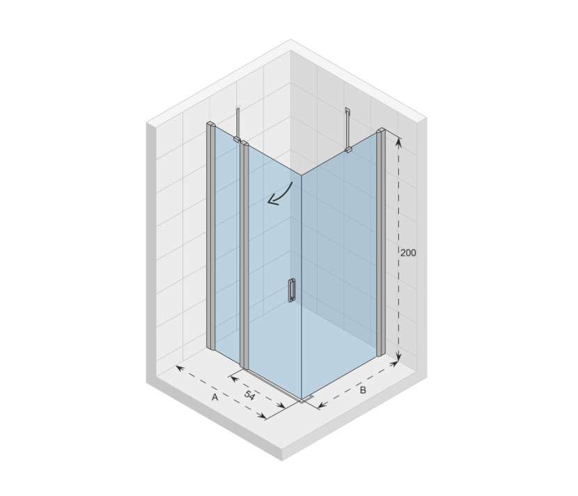 - Twee vaste wanden gecombineerd met deur, opent naar binnen en naar buiten