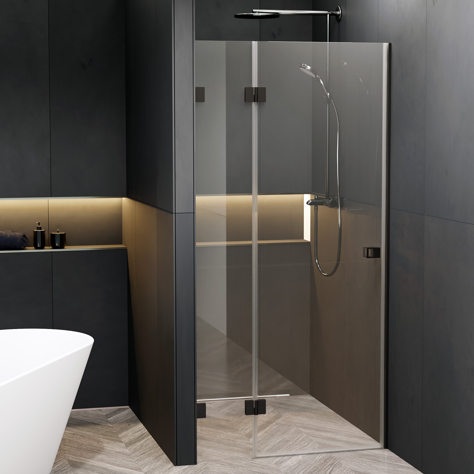 De Scandic NXT douches ook verkrijgbaar in Satinato melkglas en Smoked rookglas.