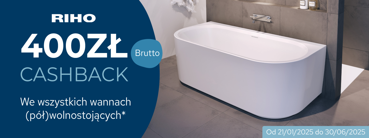 Marzysz o wannie wolnostojącej lub półwolnostojącej w swojej łazience? Teraz jest idealny czas, aby zrealizować swoje plany! Od 21 stycznia do 30 czerwca 2025 r. otrzymasz zwrot 400ZŁ (Brutto) przy zakupie (pół)wolnostojącej wanny RIHO, w tym modeli Plug&Play i Solid Surface (listę wszystkich wanien RIHO można znaleźć poniżej).