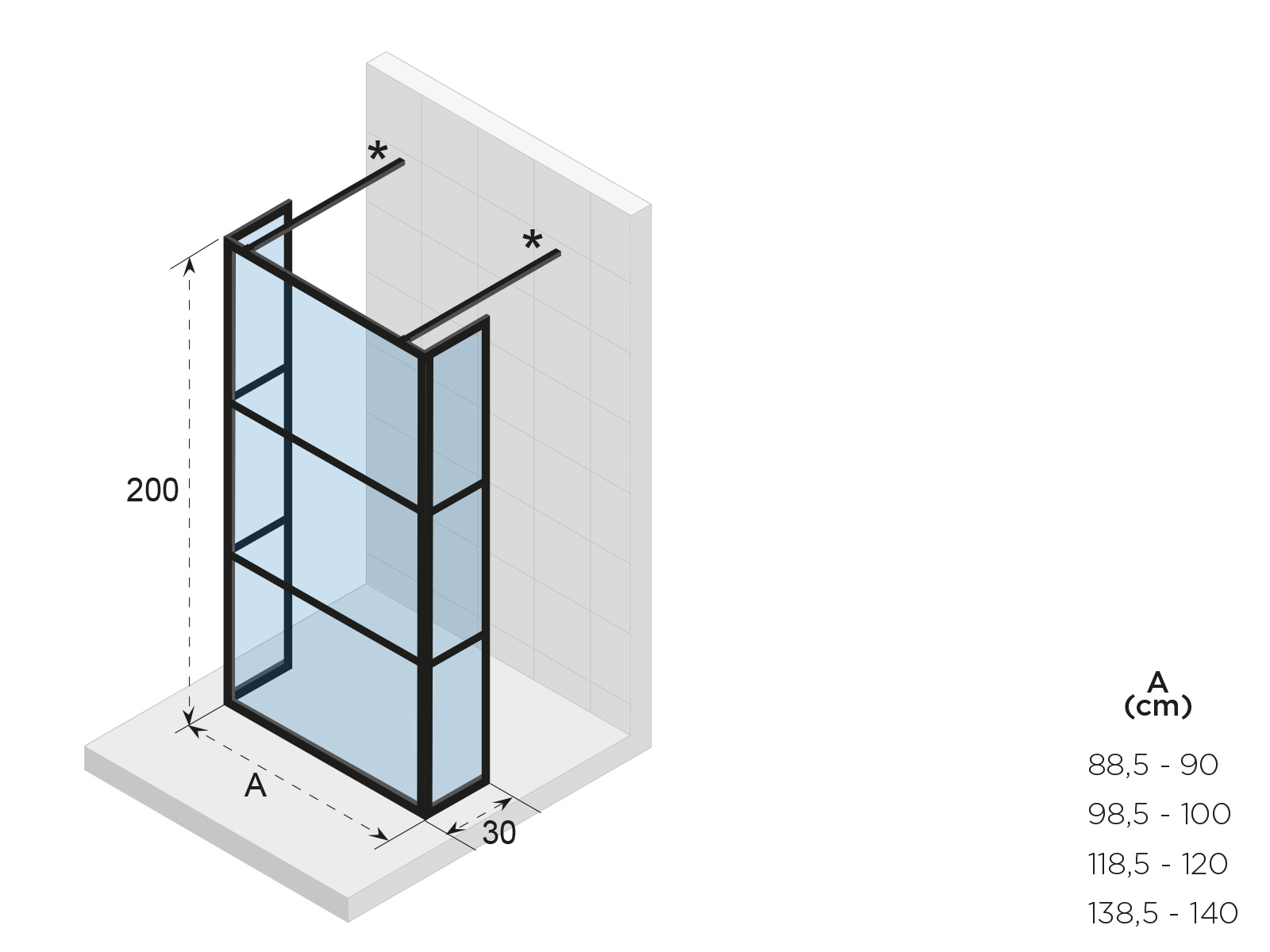Grid 404, wolnostojąca ścianka prysznicowa typu walk-in
