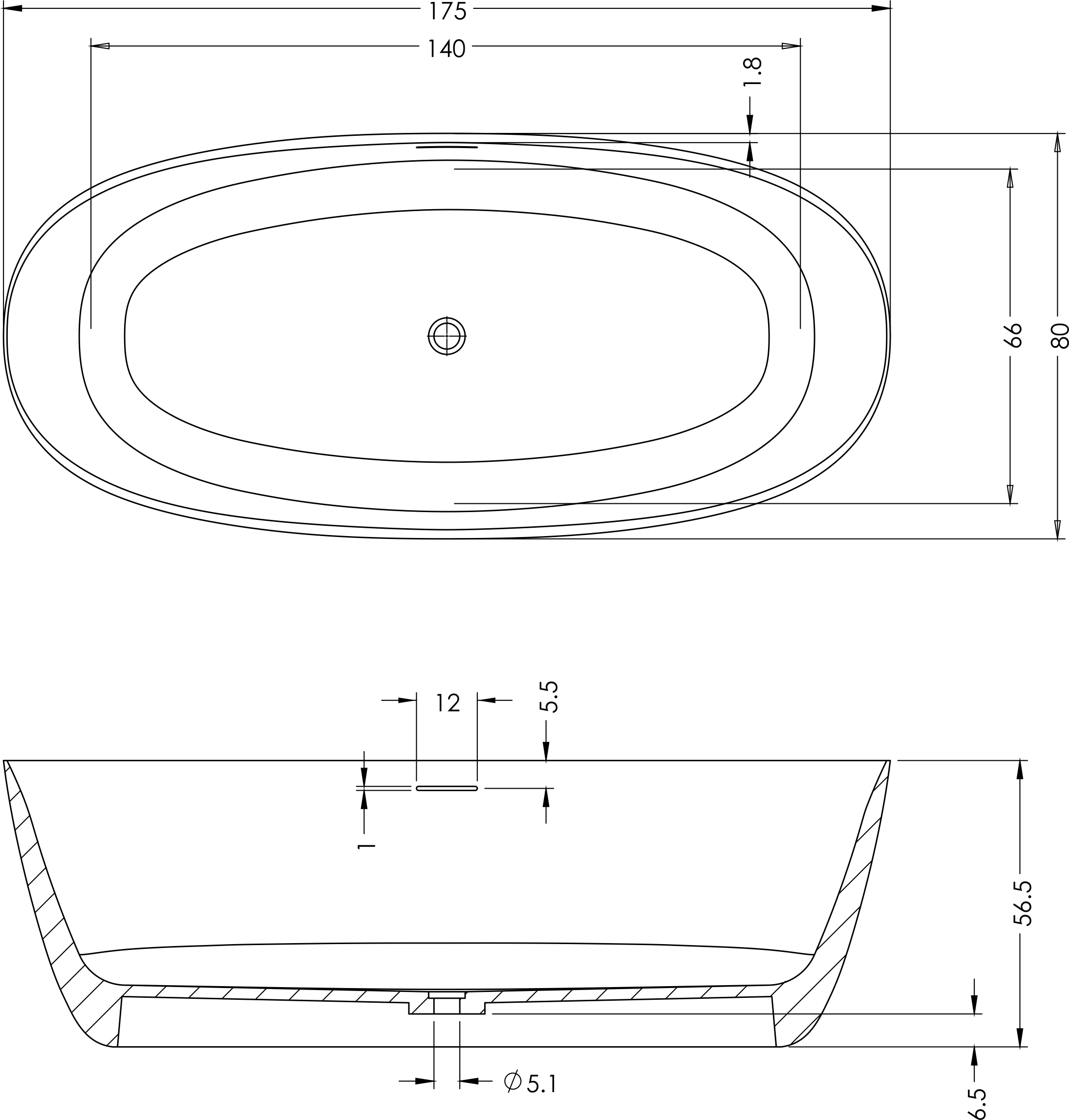 | Oval | 175 x 80 x 56.5 cm | 190 kg | B152001105 | Matt white |